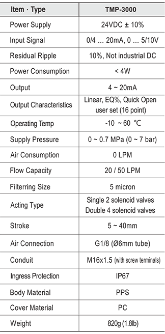 TMP-3000 valve stroke, according to input signal of 4~20mA being delivered from controller.